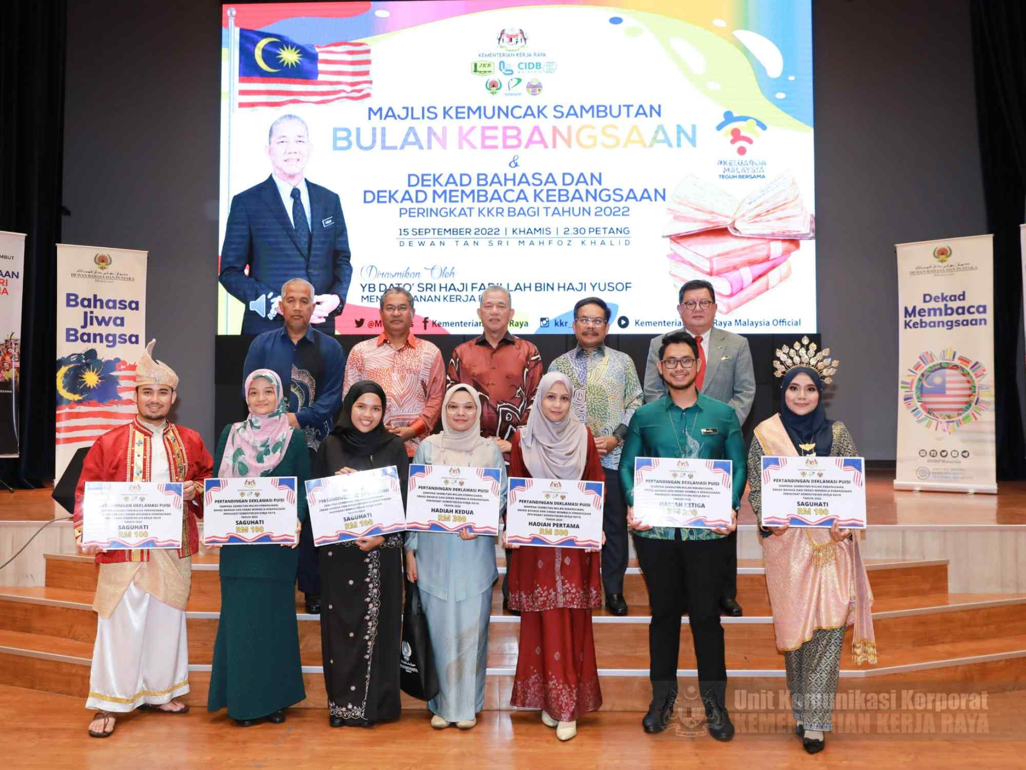 Majlis Kemuncak Sambutan Bulan Kebangsaan Dekad Bahasa Dan Dekad Membaca Kebangsaan Peringkat Kementerian Kerja Raya Tahun 2022 | Kementerian Kerja Raya Langkau ke kandungan utama