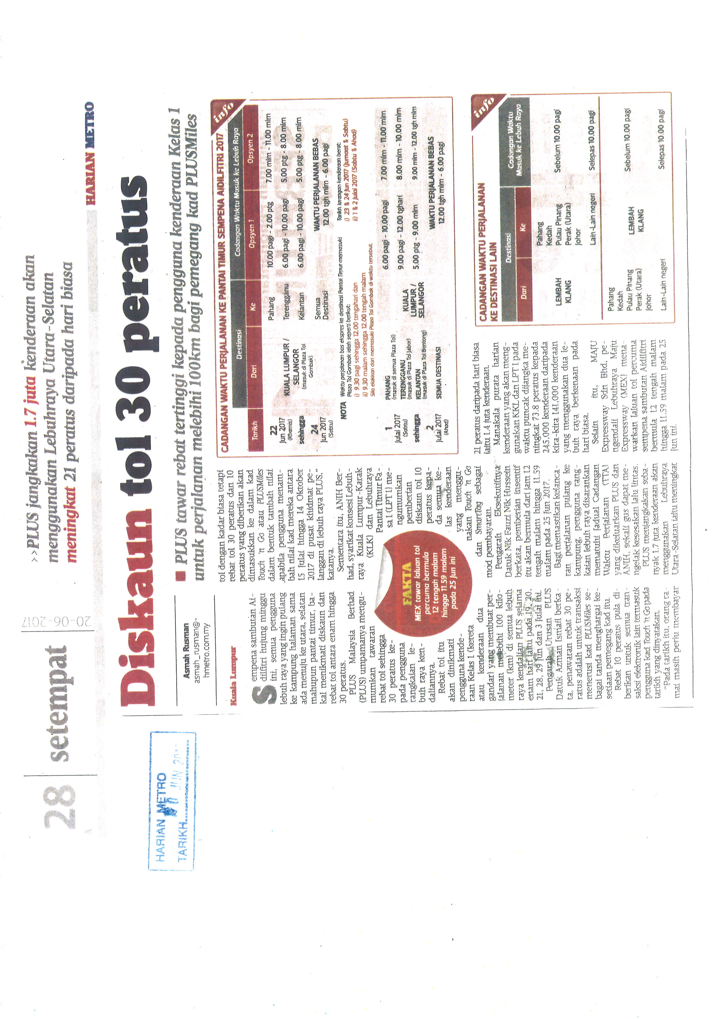 Tarikh Sel, 20/06/2017 - 12:00 Surat Khabar Harian Metro File attachments HM 20062017 - Diskaun Tol 30 Peratus _0.jpg (1.49 MB)