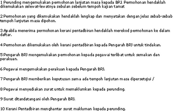 Bagi kajian-kajian jalan dijalankan oleh syarikat-syarikat perunding yang tidak dapat disiapkan mengikut surat perjanjian, pihak perunding hendaklah memohon tempoh lanjutan masa kepada Bahagian Perancang Jalan (BPJ), Kementerian Kerja Raya