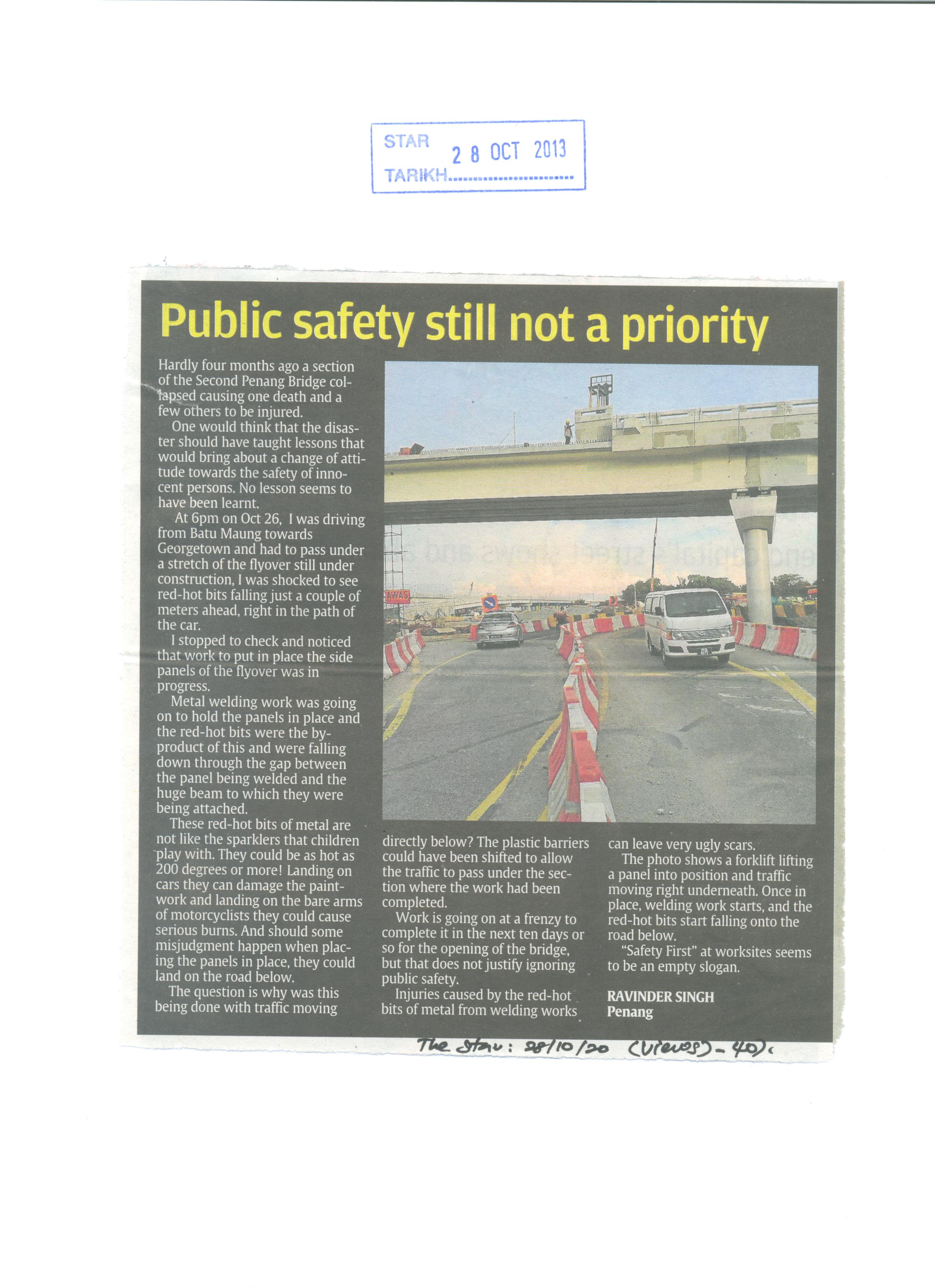 Tarikh Isn, 10/28/2013 - 20:00 Surat Khabar The Star File attachments star-28-10-13-public safety still not a priority 001.jpg (848.28 KB)