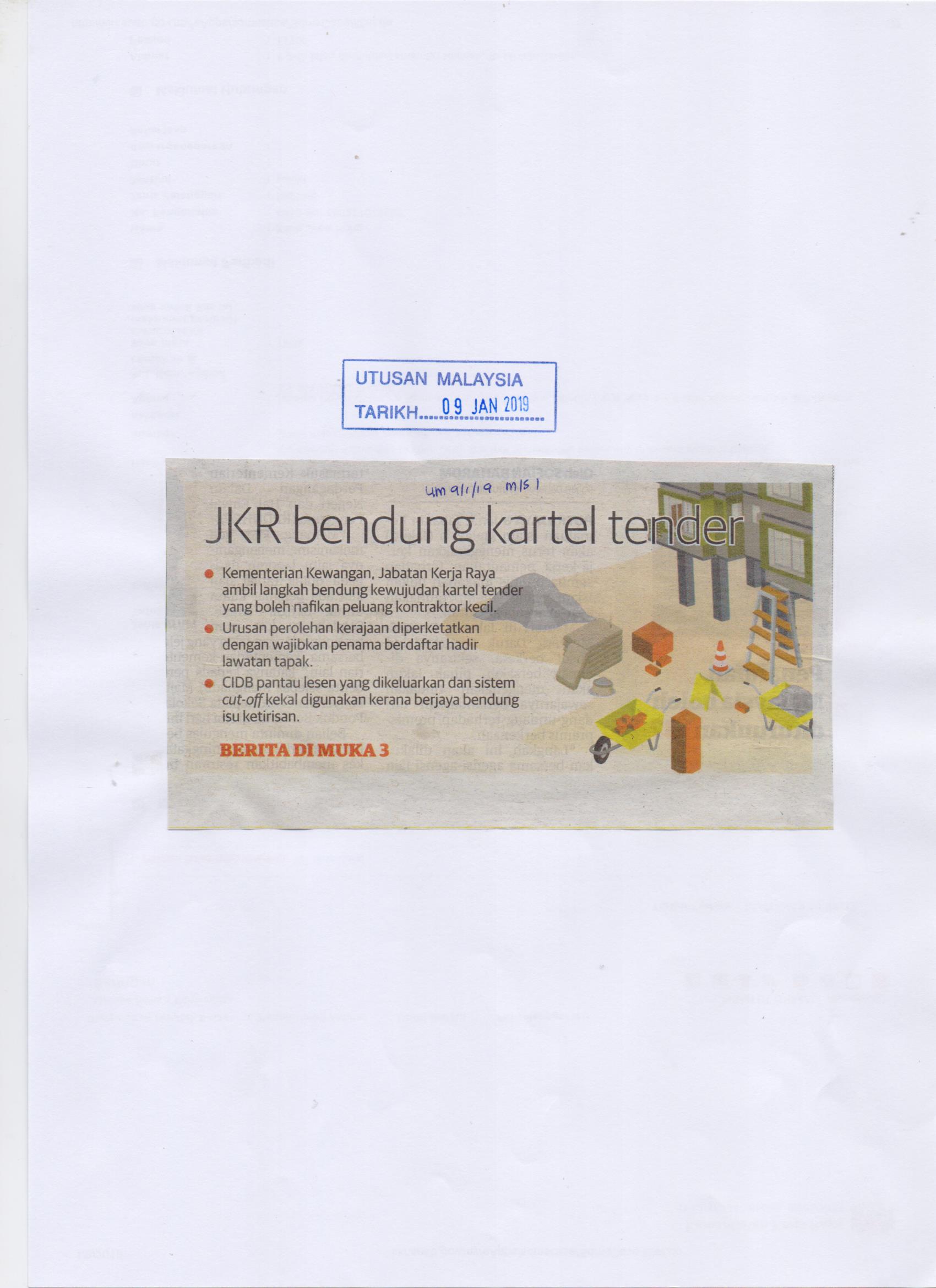 Tarikh Rab, 09/01/2019 - 12:00 Surat Khabar Utusan Malaysia File attachments JKR BENDUNG KARTEL TENDER 001.jpg (236.79 KB)