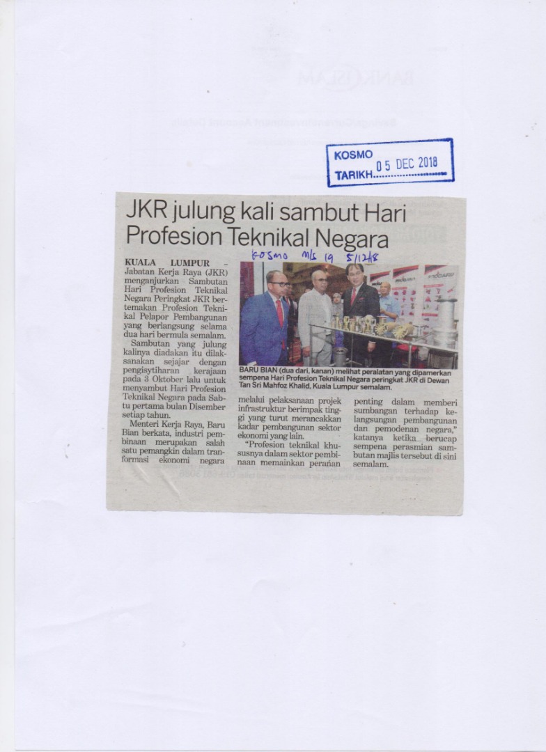 Tarikh Rab, 05/12/2018 - 12:00 Surat Khabar Kosmo File attachments JKR JULUNG KALI SAMBUT HARI PROFESION TEKNIKAL NEGARA.jpeg (134.7 KB)