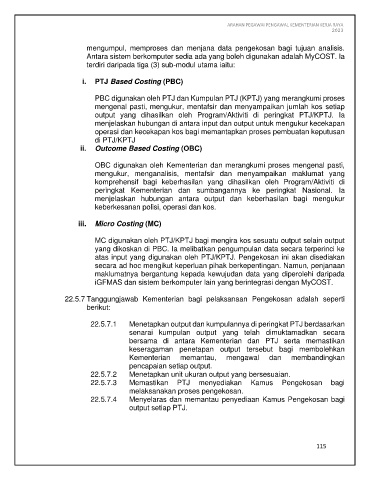 MC digunakan oleh PTJ/KPTJ bagi mengira kos sesuatu output selain output