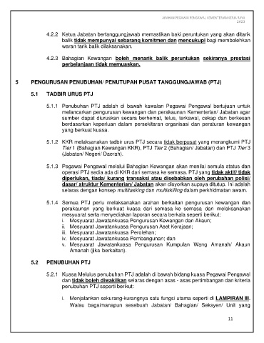 5.1.1 Penubuhan PTJ adalah di bawah kawalan Pegawai Pengawal bertujuan untuk