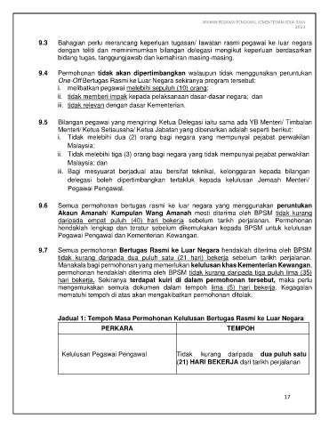 9.3 Bahagian perlu merancang keperluan tugasan/ lawatan rasmi pegawai ke luar negara