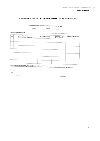 ARAHAN PEGAWAI PENGAWAL KEMENTERIAN KERJA RAYA 2023 LAMPIRAN XIII LAPORAN KEBERHUTANGAN KEWANGAN YANG SERIUS 180