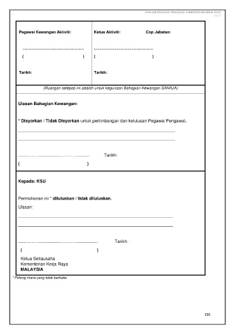 * Disyorkan / Tidak Disyorkan untuk pertimbangan dan kelulusan Pegawai Pengawal.