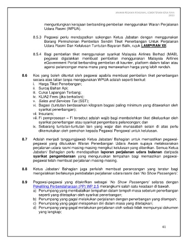 8.6 Kos yang boleh dituntut oleh pegawai apabila membuat pembelian tiket penerbangan