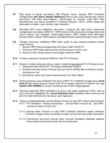 9.7 Bagi projek di bawah peruntukan P98 (Deposit Kerja), bayaran WPK hendaklah