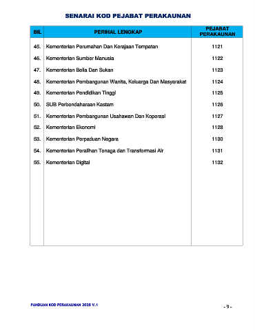 PANDUAN KOD PERAKAUNAN 2025 V.1 - 9 -
