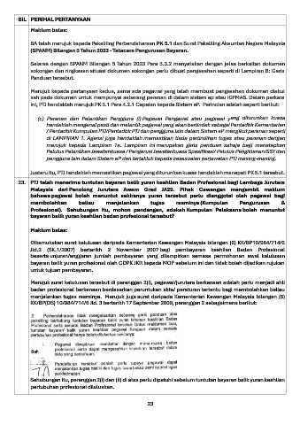 23. PTJ telah menerima tuntutan bayaran balik yuran keahlian Badan Profesional bagi Lembaga Jurutera
